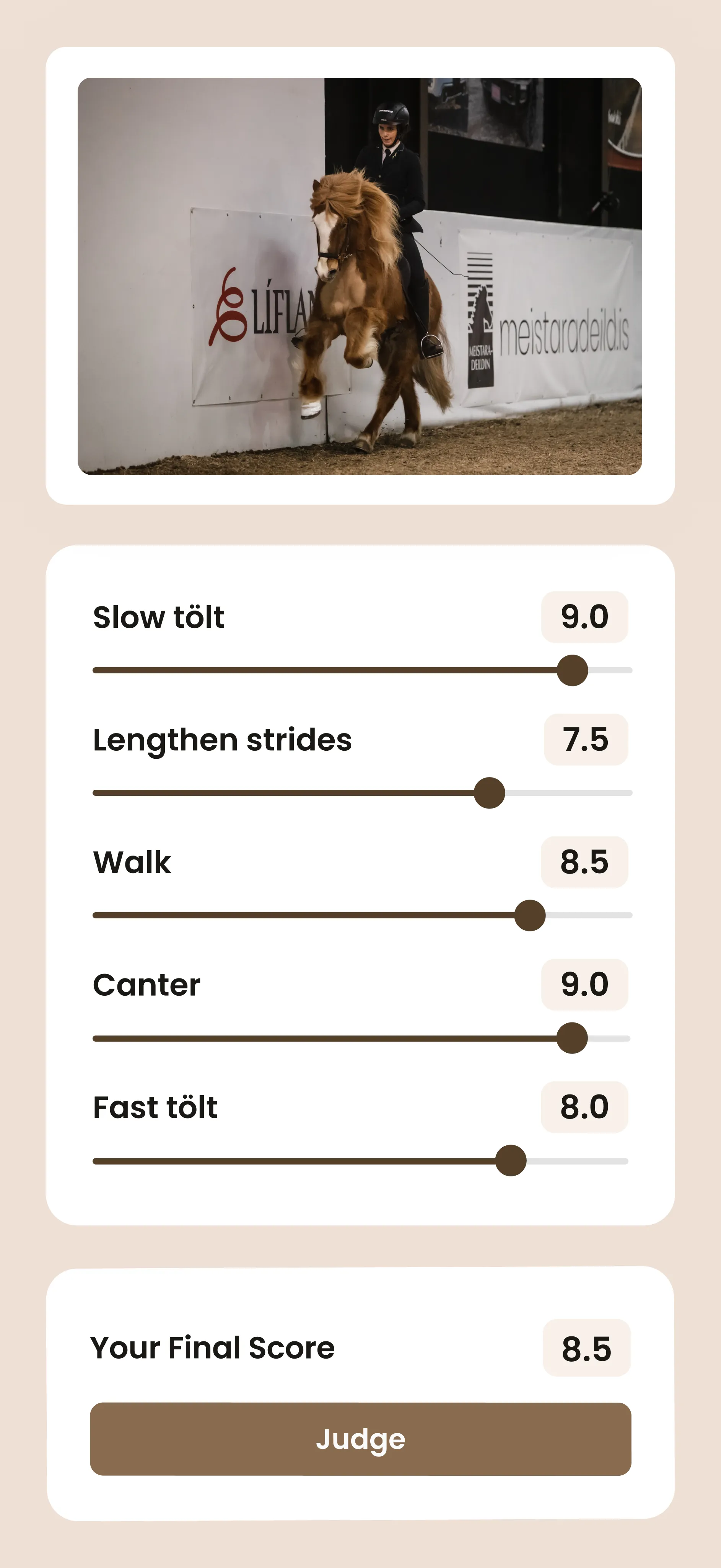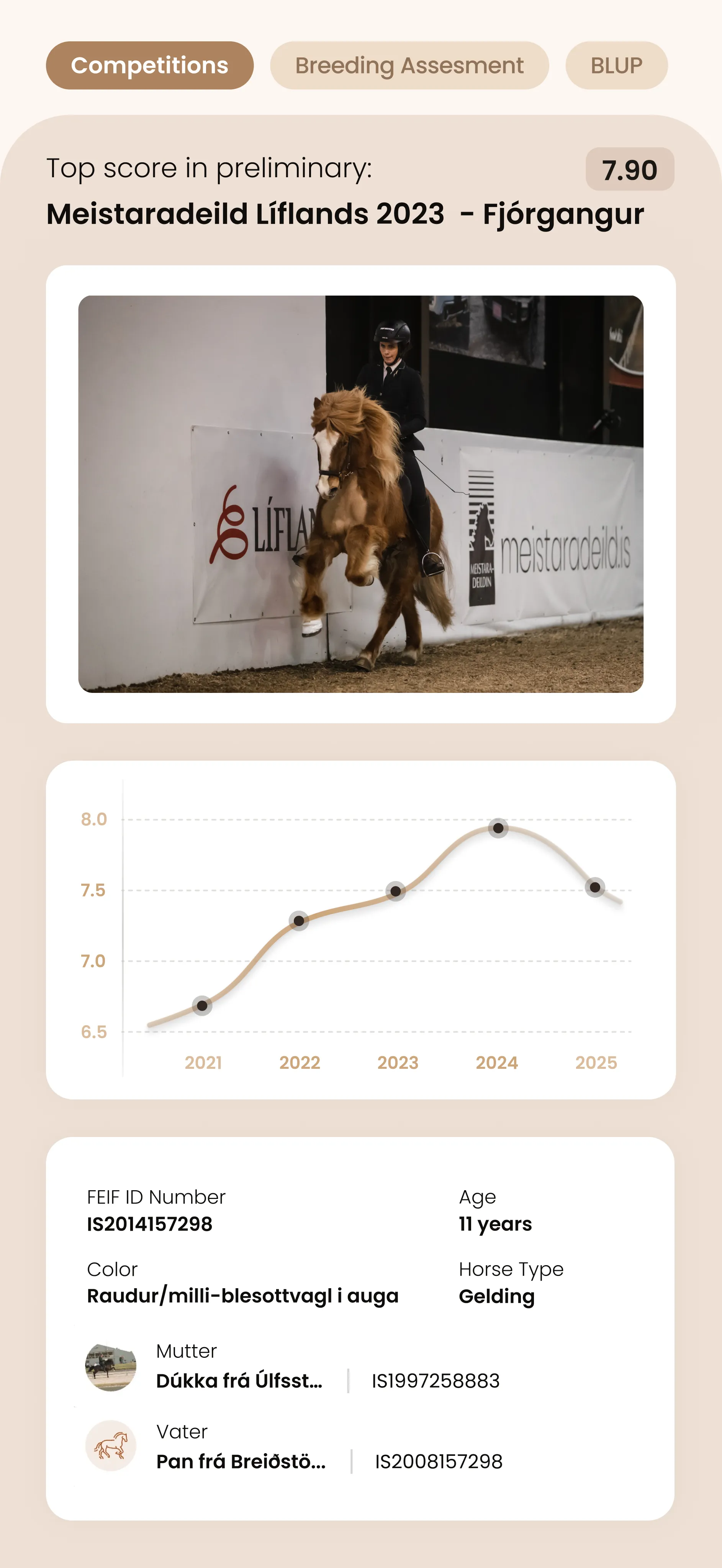 Erhalte Live-Ergebnisse, exklusive Einblicke ins Richten, gib deine eigene Bewertung ab und genieße Videos von Eiðfaxi-TV – alles direkt auf deinem Handy.